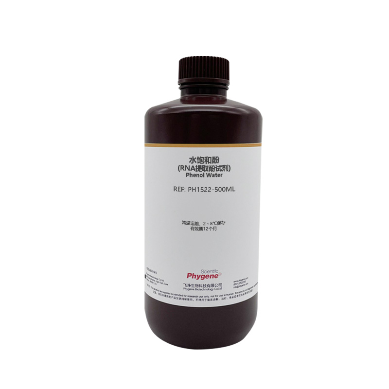 水饱和酚是用柠檬酸饱和过的酚,其pH<5.5,呈无色透明的液体,有刺激性气味;上层为柠檬酸溶液,可阻止酚与空气接触,减缓酚的氧化;下层为酚相;不含抗氧化剂-8-羟基喹啉。本品多用于异硫氰酸胍法制备总RNA。如发现产品变为红色或棕色,表明已发生氧化,不能继续使用。