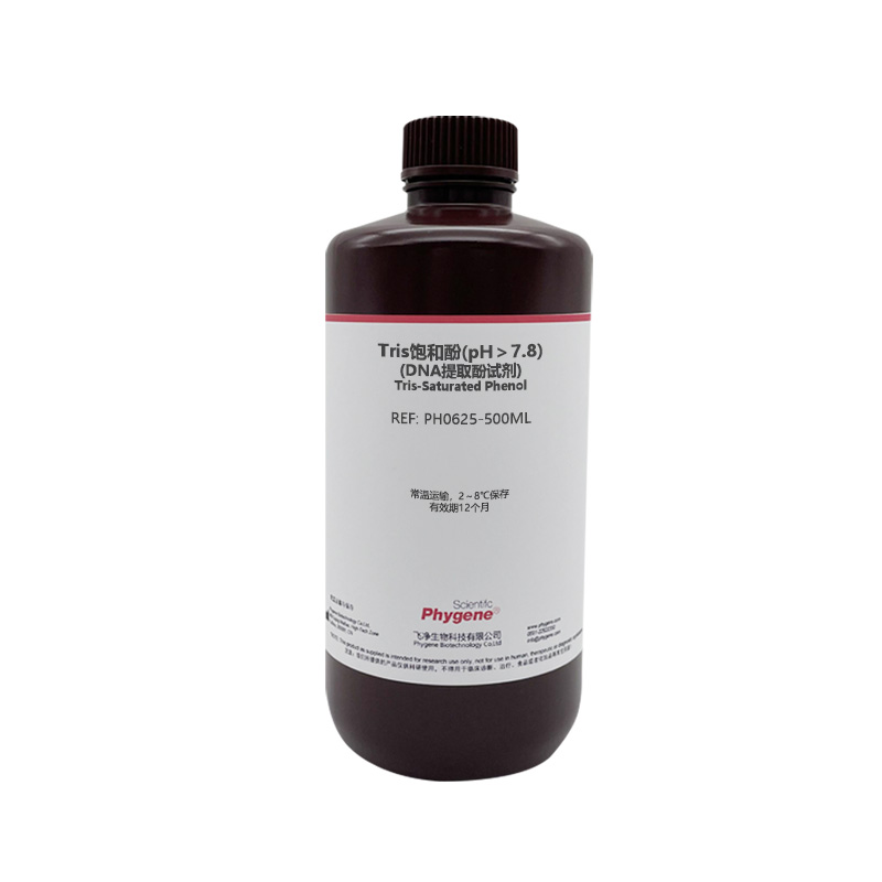 Tris饱和酚(pH>7.8)是经Tris-HCI缓冲液(pH8.0)充分饱和的酚,其pH值在7.8左右本品为浅黄色透明液体,有刺激性气味;上层为Tris-HCI缓冲液,可阻止酚与空气接触,减缓酚的氧化;下层为酚相,含抗氧化剂-8-羟基喹啉。如发现产品变为红色或棕色,表明已发生氧化,不能继续使用。
